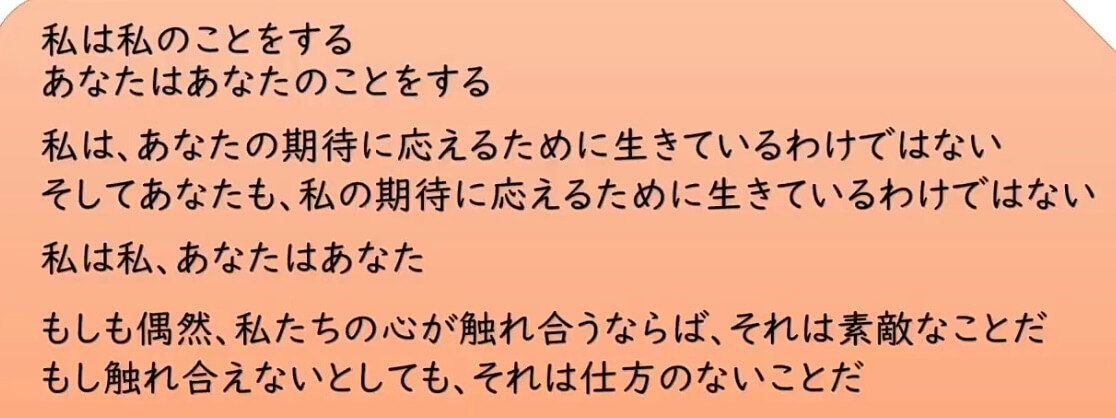 上記のアイキャッチ画像の「ゲシュタルトの祈り」と言う詩をご覧ください♪